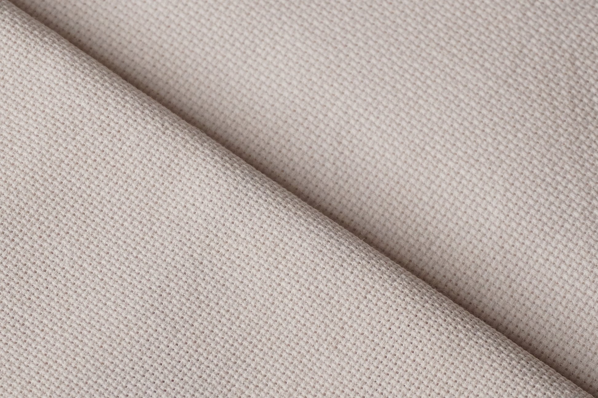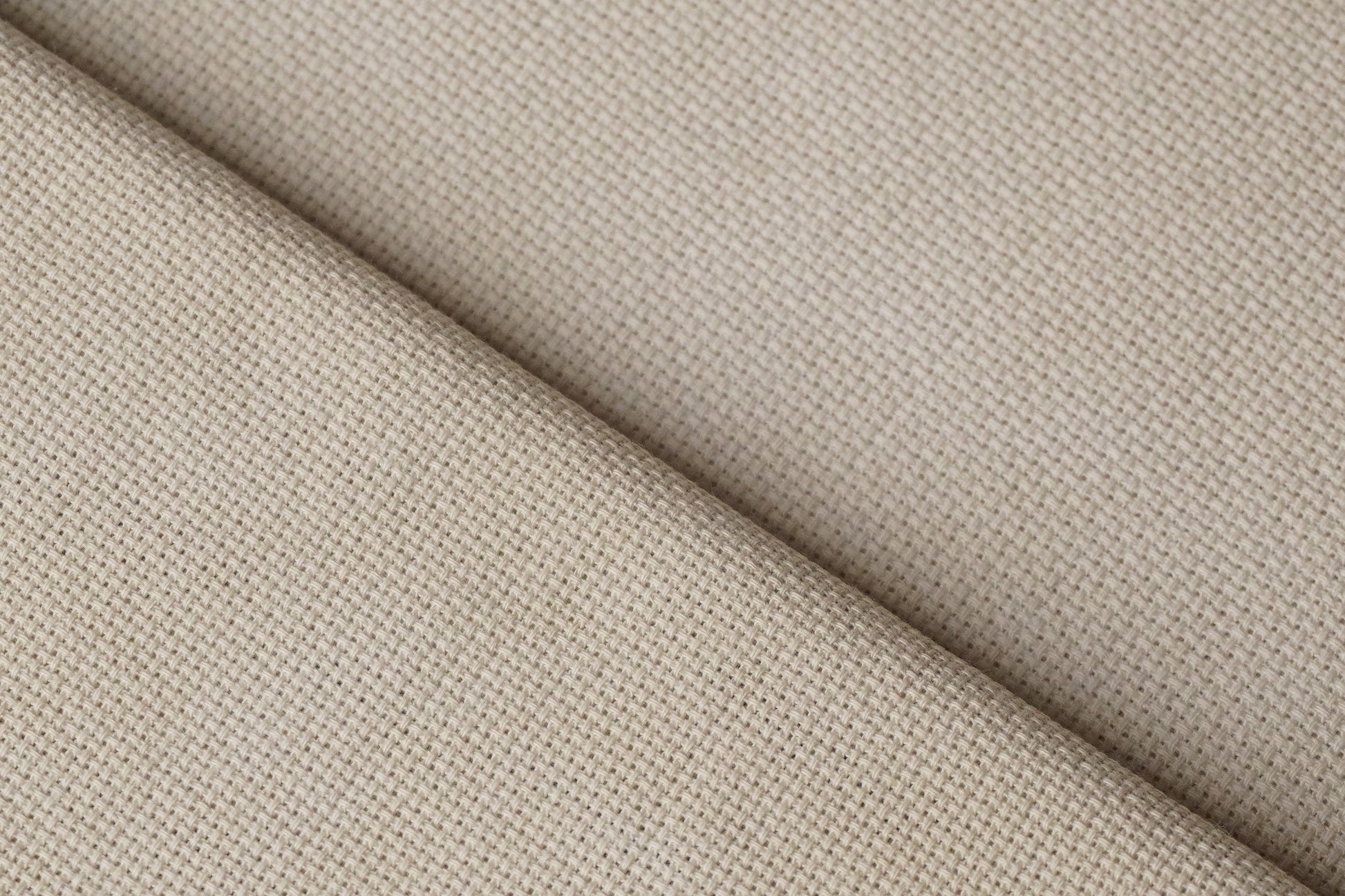 We use 100% cotton Aida cloth by Zweigart as our base material. The width of bulk rolls of 20 count Aida is narrower than the other thread counts. Please keep that in mind when ordering and check the measurements listed next to each pre-cut piece.